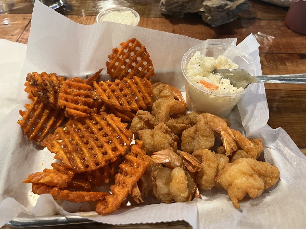 Overall good-my shrimp were relatively good, steak was actually great and cooked perfect, sweet potato fries were the waffle fries that are a little thin- so they get cold quick and did - but I was expecting that and they still tasted good. Coleslaw tasted a little weird - not off , just like whatever dressing they use may just have a weird taste. Tea was super good, the water had an off taste in both cups that we got (tasted like soap, wasn't a big deal since we had plenty of drinks ) Overall, good though, server was nice.