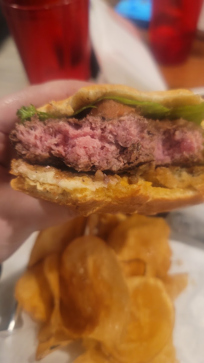 Adorably decorated restaurant at the front of an RV Park. Ordered the Drunken Onion Burger which comes with Beer Cheese and Crispy Onions on a Pretzel Bun. The burger was perfectly cooked, juicy and finger-licking good! It is usually accompanied by house made chips, but we opted for a side salad with honey mustard dressing. Friendly service by Lisa, cozy and cute atmosphere. Found on Google Maps.
