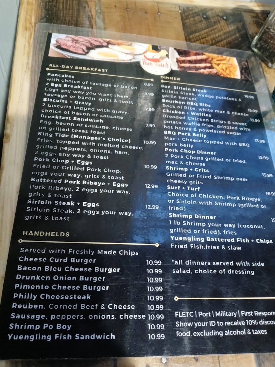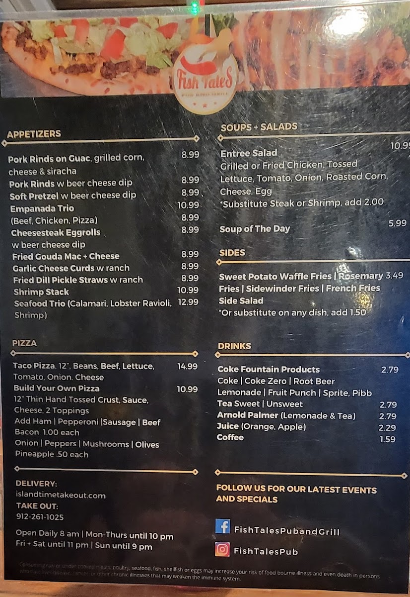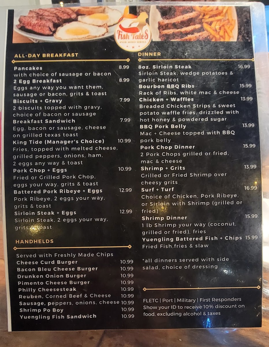 The menu at Fish Tales Pub and Grill is thoughtfully crafted to complement its relaxed, welcoming atmosphere. It offers an inviting mix of casual bites and hearty plates, perfect for unwinding after a day on the road or gathering with friends and family. Whether stopping by for lunch, a laid-back dinner, or a casual night out, you’ll find dishes that are both familiar and comfortably satisfying.